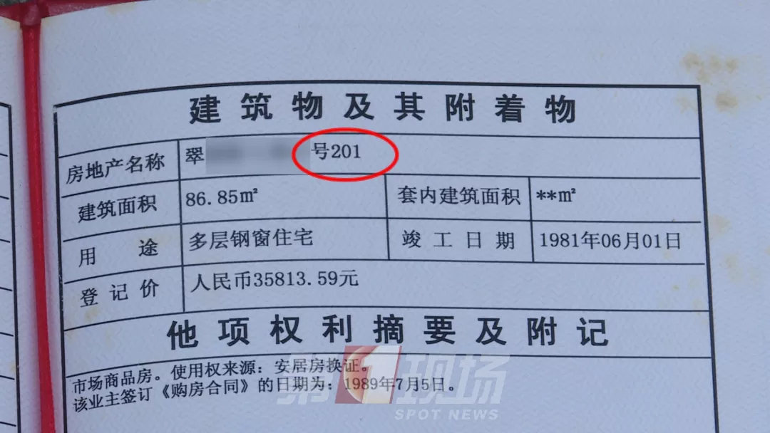 王先生向記者出示他的房產證,他的房號是201,房產證編號尾數(shù)是4970。
