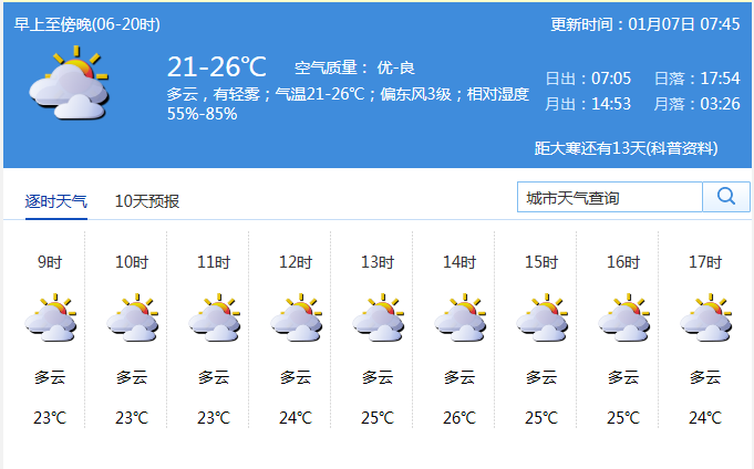 見圳客戶端·深圳新聞網(wǎng)2020年1月7日訊 據(jù)深圳市氣象局消息,今日多云,早晨有零星小雨和輕霧;8-9日受冷空氣影響,多云到晴,氣溫下降,沿海、高地和海區(qū)陣風6-7級;10-11日多云,氣溫緩慢回升,11日夜間至12日冷空氣補充影響,陰天間多云有小雨,氣溫再次下降。預計早晨6-9時,我市部分地區(qū)有輕霧,能見度較差,出行需注意交通安全。