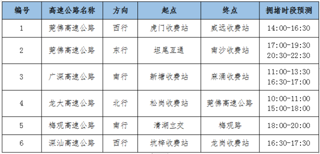 各主要高速公路擁堵時(shí)段預(yù)測(cè)如下: