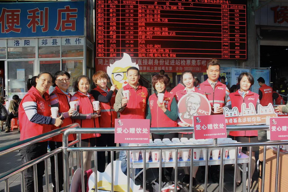 福永義工以及深圳肯德基工作人員現(xiàn)場(chǎng)贈(zèng)送熱飲。