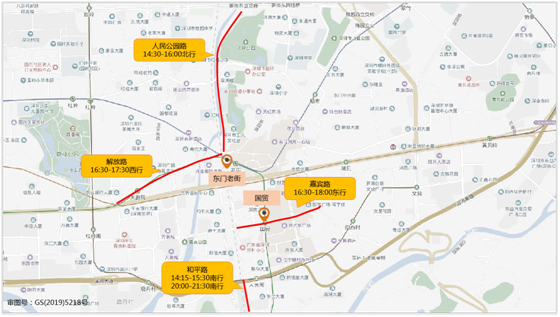 預(yù)計國貿(mào)-東門老街片區(qū)春節(jié)假期周邊主要擁堵路段有解放路(16:30-17:30西行)、人民公園路(14:30-16:00北行)、嘉賓路(16:30-18:00東行)、和平路(14:30-15:30南行、20:00-21:30南行)。具體分布如下: