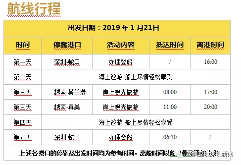 據(jù)悉,歌詩達(dá)威尼斯號郵輪1月21日16時(shí)從蛇口郵輪母港出發(fā),為6天5晚的航程,航行路線為:深圳-下龍灣(蔡蘭港)-峴港(真美)-深圳。