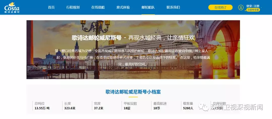 歌詩達(dá)郵輪中國官網(wǎng)顯示,威尼斯號郵輪載客量5260人,共2116個(gè)房間。