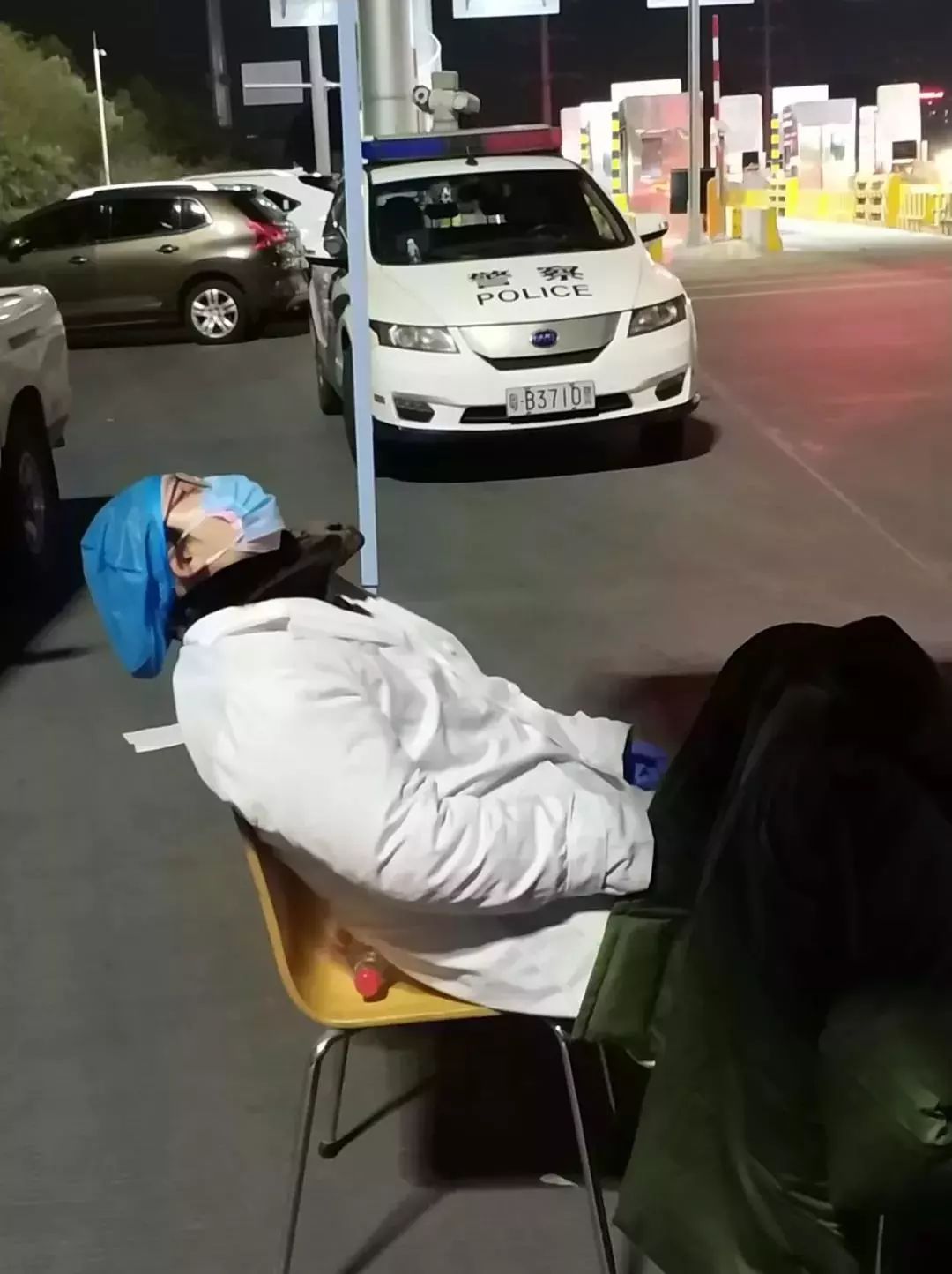 “我們采取輪班制,因高速路口車流量大,除了吃飯喝水,其余時間都在給返深人員檢測體溫?!闭掌臄z者陳偉標(biāo)說。他也是慢性病防治中心的醫(yī)生,同是這次檢疫一線的醫(yī)務(wù)人員,看到在寒夜中連續(xù)站立工作近7個小時的南月麗,疲憊地仰靠在椅子上休息,心中的觸動讓他留下了這個珍貴瞬間,也成了防控疫情一線醫(yī)務(wù)人員的真實寫照。