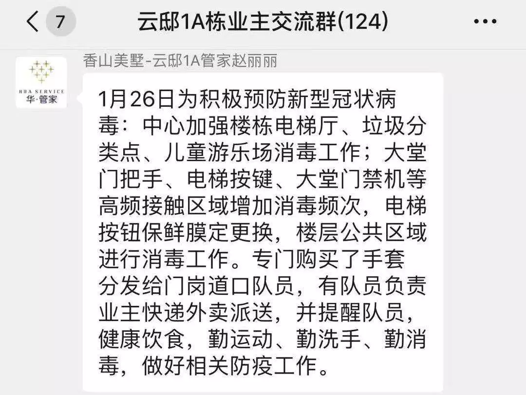 針對“新型冠狀病毒”,管理服務(wù)中心迅速響應(yīng),組織召開專項(xiàng)會議,傳達(dá)集團(tuán)、公司本部對此次疫情的工作指示,根據(jù)小區(qū)情況成立疫情防范小組,制定疫情防控應(yīng)急預(yù)案,并要求全體工作人員高度重視,做好各項(xiàng)疫情預(yù)防工作,保障小區(qū)居民生活穩(wěn)定。
