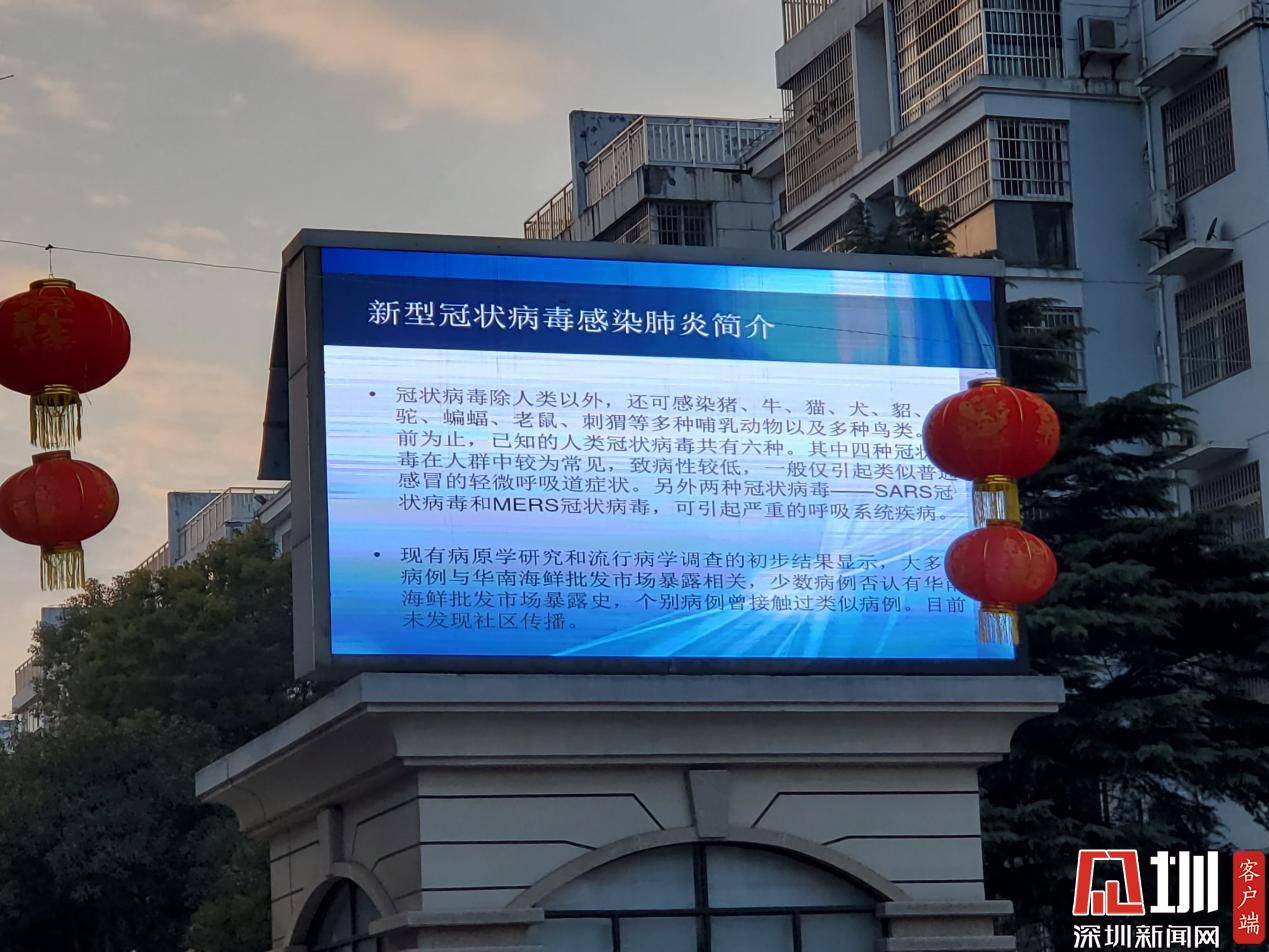 小區(qū)正門口有一塊巨大的顯示屏,播放著關于新型冠狀病毒的科普知識。出入口的崗亭、店鋪門口都張貼著許多關于疫情防控的通知、告示、預防小知識,以前車流不停的通道現(xiàn)已停止通行。除了藥店,周邊小店基本已經關門,但仍有留下一些溫暖的話語。