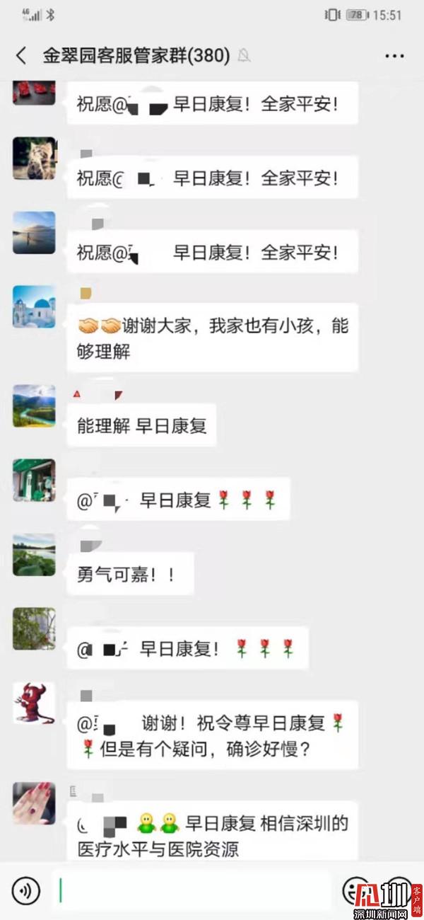 業(yè)主紛紛鼓勵確診患者家屬并祝其家人早日康復(fù)。