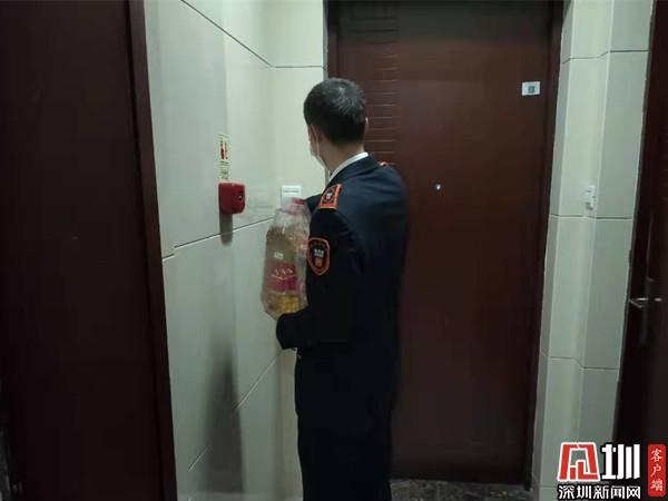 物業(yè)工作人員給居家觀察業(yè)主送油等生活用品。