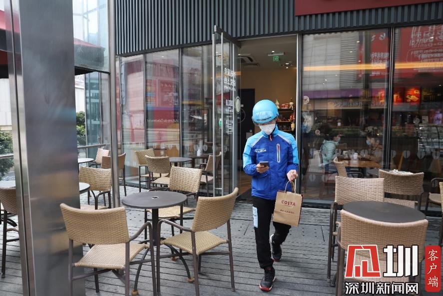 在咖啡店等待商家制作完成,取貨后,王彭輝便馬不停蹄地騎著電動(dòng)車(chē)前往訂單上的地址。平日繁華的南山商區(qū),現(xiàn)在空空蕩蕩的,除了偶爾有車(chē)輛開(kāi)過(guò),路上幾乎都是外賣(mài)小哥、快遞小哥的身影,“現(xiàn)在就是大家都待在家里,路上人和車(chē)少了,我們也能更快地把訂單送達(dá)?!蓖跖磔x說(shuō):“我以前是在梅林那邊工作,剛開(kāi)始來(lái)南山這邊送外賣(mài)的時(shí)候,對(duì)這里的路不熟悉,覺(jué)得每個(gè)路口都長(zhǎng)得一樣,抬頭都是大廈,低頭都是人,但是做得久了以后,慢慢的就熟悉了?!?/p>