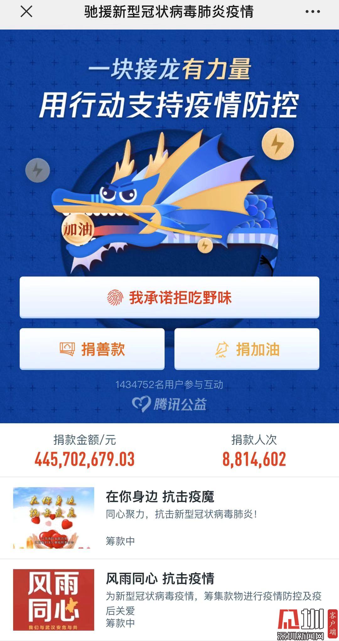 此外,騰訊公益也開(kāi)通馳援新冠疫情籌集善款的專項(xiàng)平臺(tái),該平臺(tái)上已有53家慈善組織啟動(dòng)執(zhí)行工作。截至2月2日下午6點(diǎn)45分,該平臺(tái)籌集善款445702679.03元,累計(jì)捐款達(dá)8814602人次。目前這些啟動(dòng)執(zhí)行工作的公益組織都在按照騰訊公益平臺(tái)和運(yùn)營(yíng)規(guī)則進(jìn)行。騰訊公益平臺(tái)也將通過(guò)“透明機(jī)制“追蹤這些的項(xiàng)目的執(zhí)行情況。