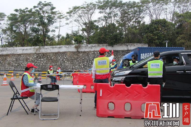 見圳客戶端·深圳新聞網2020年2月3日訊(見圳客戶端、深圳新聞網記者吳梓欣)眼下正值返深高峰期,為控制疫情影響,近日,深圳交通運輸局在城市出入要道都設置了檢疫區(qū)?!按蜷_車窗,帶好口罩,測量體溫……”2月2日,記者在南頭收費站看到交警正為過往車輛及人員測量體溫,在身著“南山交通”黃馬甲的交通檢查隊伍中還有一抹熟悉的紅色——深圳義工。