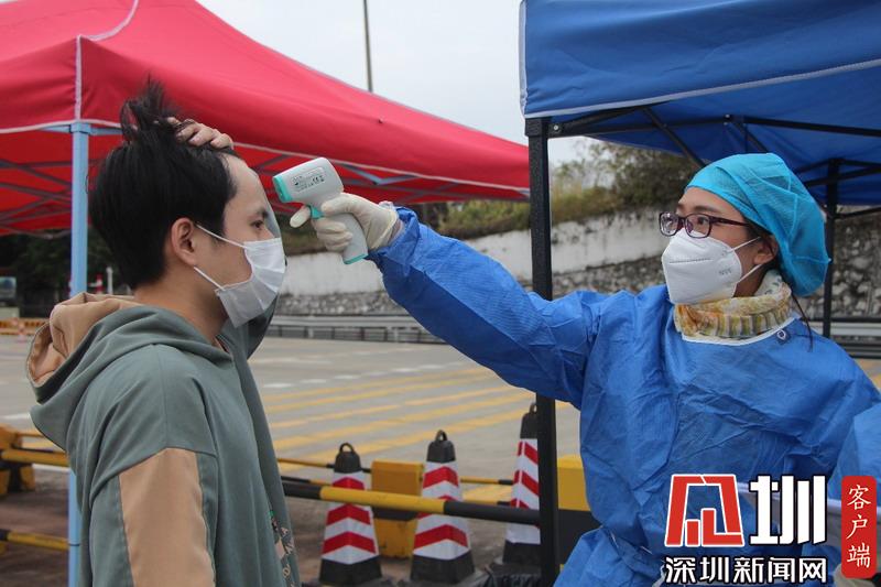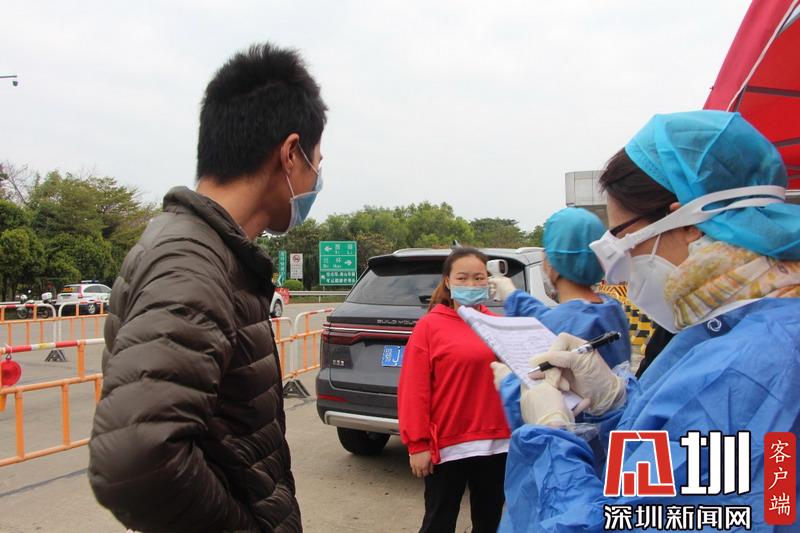 據了解,今年春節(jié)約有1500萬人離深返鄉(xiāng),目前已有500萬人回到深圳,還有近1000萬人將返回深圳。2日下午,記者在現(xiàn)場看到,南頭收費站僅開放了三條車道。每條車道分別設有2名志愿者,一名負責協(xié)助交警測量體溫,并檢查車內乘載人數,另一名負責登記車輛及人員信息。