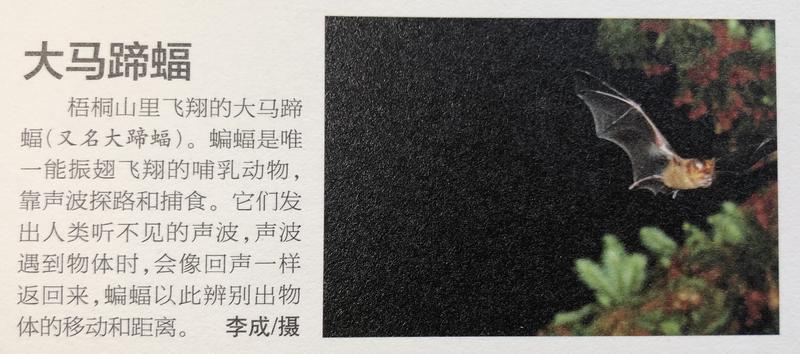 “我是在梧桐山附近仙湖植物園拍到的大馬蹄蝠。每到傍晚,仙湖植物園進(jìn)出園區(qū)的那條路上,都有數(shù)量比較多的大馬蹄蝠在那飛。當(dāng)時(shí)有幾棵樹在開花,我拍了好幾張終于抓拍到一張清晰的。”2月4日,李成在回憶當(dāng)年拍攝經(jīng)歷時(shí)說,當(dāng)時(shí)蝙蝠群距離他最近的有2-3米,最遠(yuǎn)的有10多米。