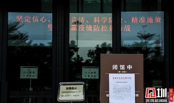 寶安圖書館:透過玻璃窗往里看,館內(nèi)空蕩蕩的場景與往日形成鮮明對比。