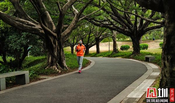 靈芝公園:有市民戴著口罩仍堅持跑步。