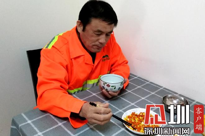 胡蘿卜丁炒玉米,再加一碟土豆絲下飯,這就是黃學志的午餐。黃學志說,他有幾年沒回老家了,本來計劃春節(jié)回去過年,順便帶老伴看病,沒想到疫情越來越嚴重,于是就打消了這個念頭。疫情發(fā)生以來,除了日常工作,他還要負責為值班同事普及疫情防控知識的任務(wù)。從早上7點半到12點半,下午1點半到5點半,他每天在沙頭角7個垃圾轉(zhuǎn)運站、18個公廁來回奔走,給同事配送口罩及消毒用品,檢查他們的身體健康情況?!艾F(xiàn)在是疫情防控關(guān)鍵期,我們也希望為防控工作貢獻出來自環(huán)衛(wèi)清潔行業(yè)的一份力量?!秉S學志說。(見圳客戶端、深圳新聞網(wǎng)記者鄧雪婷)