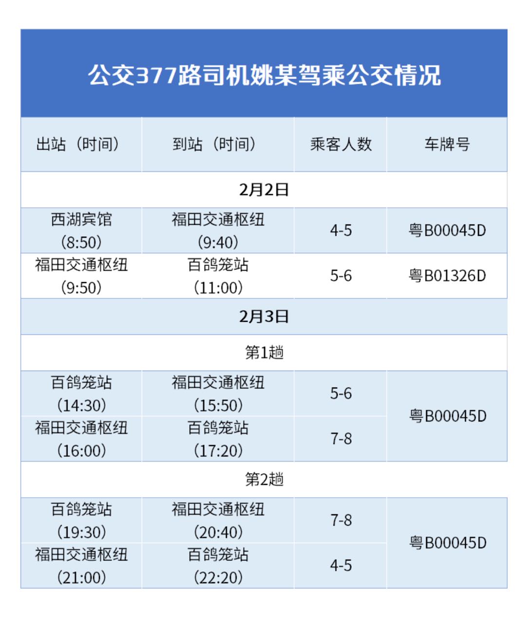 疾控部門呼吁市民對照姚某駕乘車時間,如該時間段搭乘過377路公交,請與龍崗區(qū)疾控中心聯(lián)系,電話:13823506848,0755-28932299。