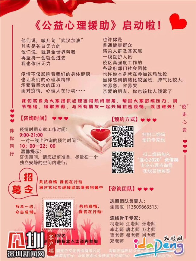 葵涌辦事處壩光社區(qū)婦聯(lián)副主席、大鵬潮汐文化傳播有限公司負(fù)責(zé)人謝慧敏積極響應(yīng)新區(qū)群團工作部建立新區(qū)防疫心理疏導(dǎo)志愿服務(wù)隊的號召,聯(lián)合多家機構(gòu)啟動公益心理援助,為市民提供線上調(diào)節(jié)情緒、舒緩壓力等免費心理服務(wù),共渡心理關(guān),服務(wù)將持續(xù)到疫情結(jié)束。