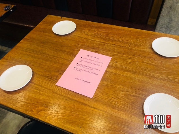 餐廳在門口處配備體溫測(cè)試儀,隨時(shí)對(duì)進(jìn)入餐廳的人員進(jìn)行體溫監(jiān)測(cè)。在人員疫情防控方面,小芙蓉餐廳的員工都是留深人員為主,要求員工每天在晨檢時(shí)測(cè)量體溫及進(jìn)行手部消毒后方能上崗,每天測(cè)量體溫2次、更換口罩2次;在顧客進(jìn)來(lái)餐廳用餐前先要求其要在門口處測(cè)量體溫,之后要對(duì)鞋子進(jìn)行消毒后方可進(jìn)店;當(dāng)外賣小哥過(guò)來(lái)餐廳取餐時(shí)則要求其在門口等候取餐,并為其測(cè)量體溫。此外,餐廳還在每張桌子上貼有防疫公告,以提醒進(jìn)店用餐的顧客注意自身防護(hù)。