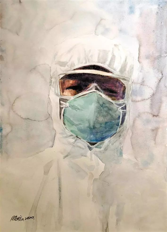 魯文詠在詩歌《最美的人,你看不見臉》中寫道:“最美的人,你看不見他們的臉。他們的臉被口罩遮著,被護(hù)目鏡遮著,被防護(hù)服遮著,有時,也被夜色遮著。他們在人群里穿行,在焦灼的企望的目光里穿行。他們來了,他們穿過,焦躁的人群就安靜下來。最美的人,你看不見他們的臉,看不見年齡,甚至性別。是的,天使不計年齡,天使不分性別。”