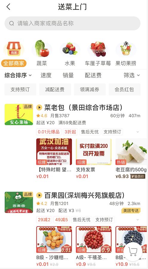配送費(fèi):大部分20元起送,配送費(fèi)因店而異;采用“無接觸配送”。