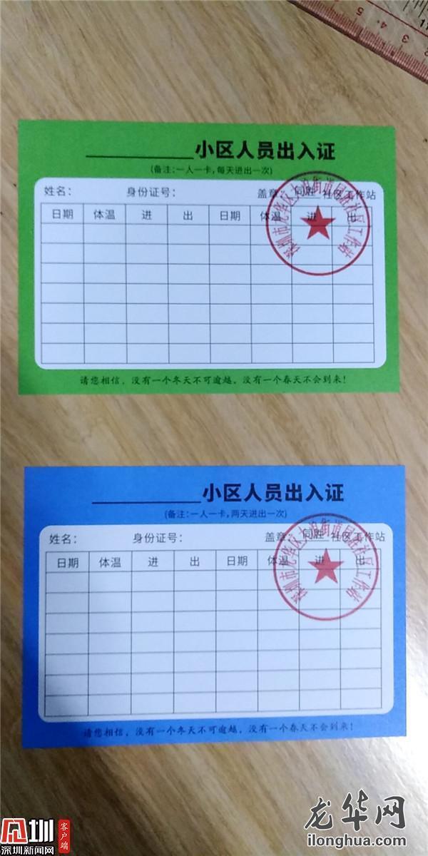 近日,根據(jù)不同居民的情況和需求,大浪街道用四種顏色的卡片對居民出入進行分類管理:紅色是有發(fā)熱等異常癥狀、按要求正在居家隔離的人員,黃色是來深14天內(nèi),正在居家隔離且無異常癥狀的人員,可視情況轉(zhuǎn)為其他管理模式。紅、黃兩類人員嚴禁其出門,由社區(qū)工作站提供物資采購、幫送服務。藍色是沒有居家隔離、身體狀況正常的在家人員,憑證可以兩天出入1次;綠色是沒有居家隔離、身體狀況正常的上班人員,憑證每天可以出入1次。