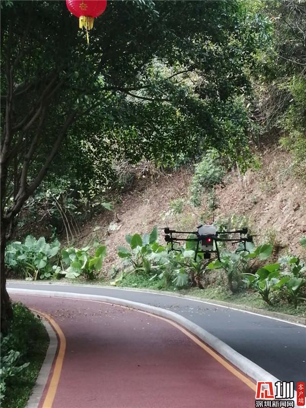 羅湖:多架無人機對淘金山綠道進行全面消毒