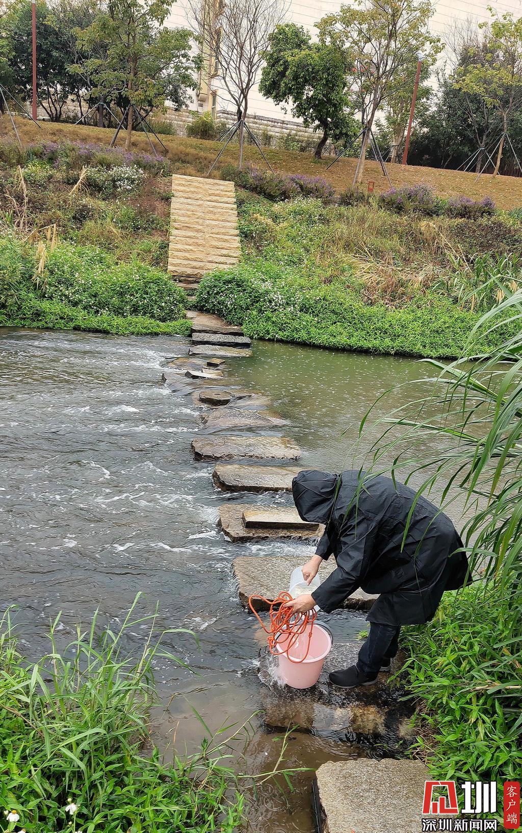 在雨中取樣的水質(zhì)監(jiān)測(cè)工作人員