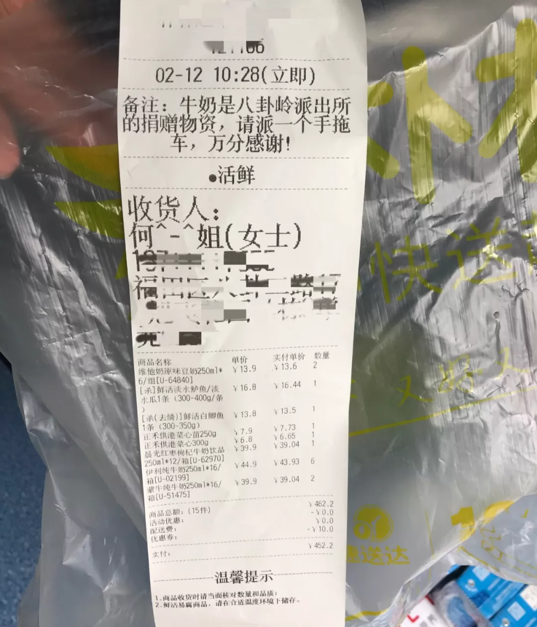 2月12日上午,一名群眾來(lái)到深圳市公安局福田分局八卦嶺派出所門口,送上防疫慰問(wèn)物品。民警問(wèn)及其姓名和聯(lián)系方式時(shí),她只說(shuō):“民警的辛苦我們都看在眼里,這是我作為一名市民的心意和謝意?!北戕D(zhuǎn)身離開(kāi)了。民警在清點(diǎn)紀(jì)錄物資時(shí),無(wú)意中發(fā)現(xiàn)了該熱心市民訂購(gòu)物資的一張采購(gòu)單,八卦嶺派出所全體警務(wù)人員在這里對(duì)不肯留名的何女士表示衷心的感謝!疫情無(wú)情、人民有情,溫暖警心、堅(jiān)定前行!
