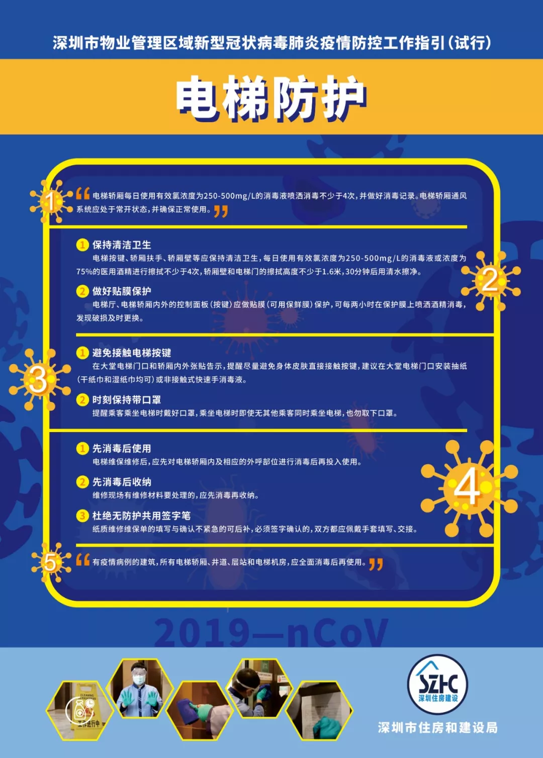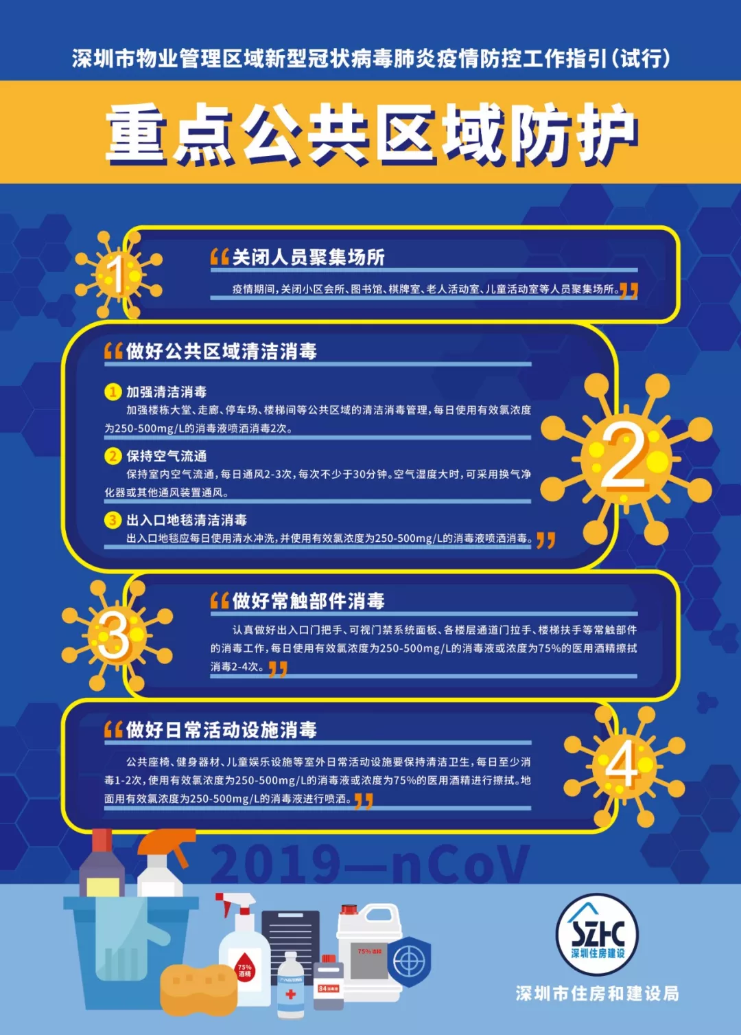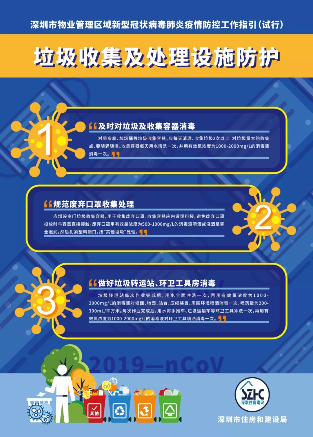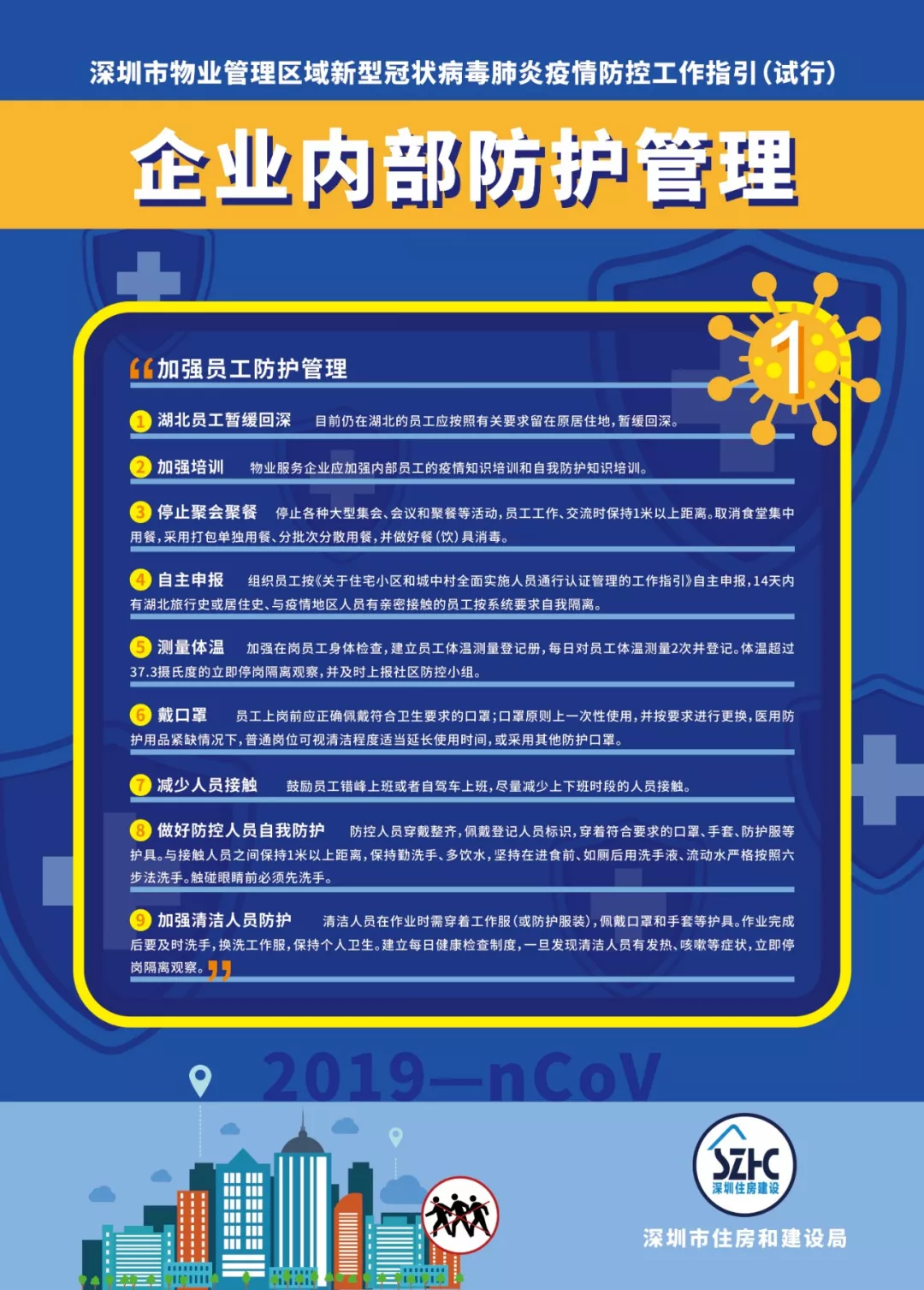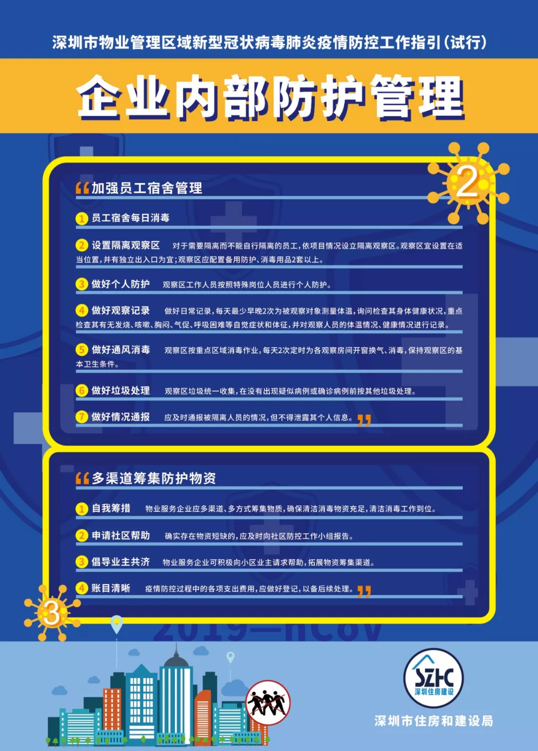 為進(jìn)一步做好物業(yè)管理區(qū)域新型冠狀病毒肺炎疫情防控工作,依據(jù)《廣東省物業(yè)管理區(qū)域新型冠狀病毒感染的肺炎疫情防控工作指引(試行)》《深圳市新型冠狀病毒感染的肺炎疫情防控指揮部印發(fā)關(guān)于建立健全社區(qū)聯(lián)防聯(lián)控機(jī)制的若干措施的通知》《深圳市新型冠狀病毒感染的肺炎疫情防控指揮部辦公室社區(qū)小區(qū)組工作方案》《深圳市新型冠狀病毒感染的肺炎疫情防控指揮部辦公室關(guān)于印發(fā)住宅小區(qū)和城中村全面實(shí)施人員通行認(rèn)證管理的工作指引的通知》等文件,結(jié)合當(dāng)前實(shí)際,市住房建設(shè)局編制了《深圳市物業(yè)管理區(qū)域新型冠狀病毒肺炎疫情防控工作指引(試行)》,現(xiàn)印發(fā)給你們,請(qǐng)參照?qǐng)?zhí)行。