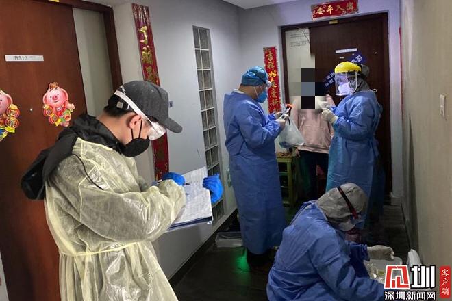圖為鹽田區(qū)醫(yī)務(wù)工作人員上門采樣