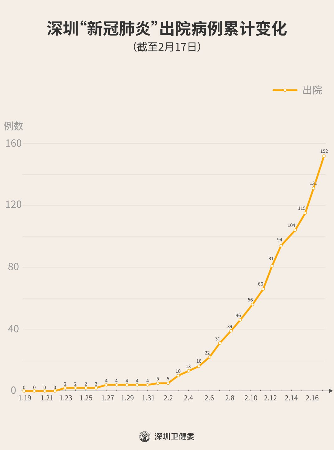 2月17日下午,經(jīng)專家組會診,深圳再有21名新型冠狀病毒肺炎確診患者出院,累計達(dá)152人,連續(xù)15天有人出院。