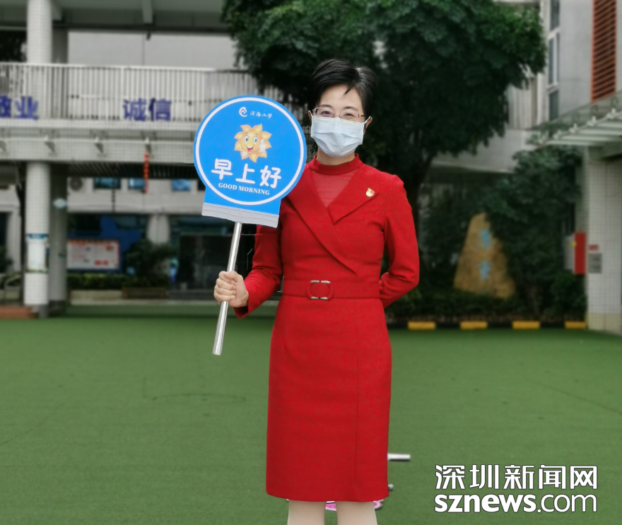今日的“開(kāi)學(xué)典禮”雖不同往日,校園里空蕩蕩,沒(méi)有師生的到來(lái),但寶安區(qū)濱海小學(xué)的校園門(mén)口依舊出現(xiàn)了一個(gè)熟悉的身影,她用這種特殊的方式迎接孩子們開(kāi)學(xué)的第一天,“早上好”“你真棒”,這溫情的話語(yǔ)是李桃輝校長(zhǎng)給每一位師生的問(wèn)候。