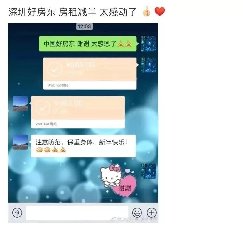 C******a:我有一位龍崗朋友是房東,他們給所有租客都減免了半個(gè)月的房租。暖心感動(dòng)!