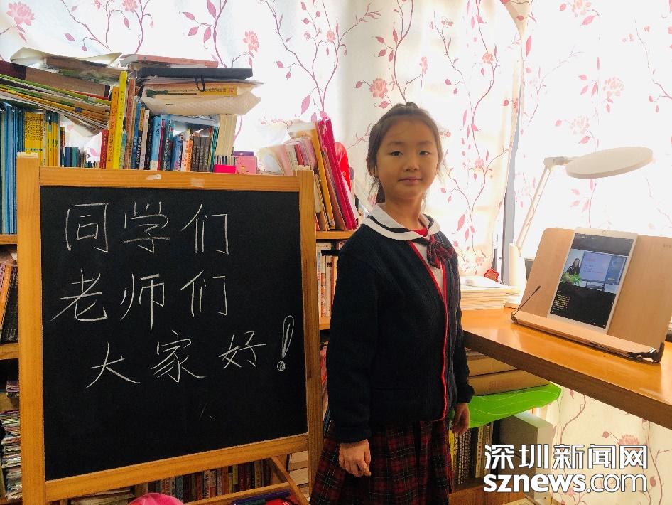 早早地,小妞要我在小黑板上寫下對(duì)老師們對(duì)同學(xué)們的問(wèn)候。還記得昨晚臨睡前,她興奮地說(shuō):“明天就能和老師和同學(xué)們?cè)诰W(wǎng)上相見(jiàn),太開心了?!?/p>