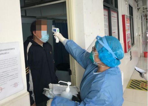 ▲張靖正在給病人量體溫。