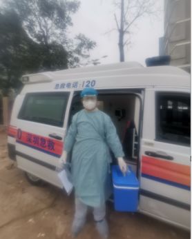 ▲傅偉去寶安區(qū)疾病預(yù)防控制中心運(yùn)送新冠肺炎檢測(cè)標(biāo)本。