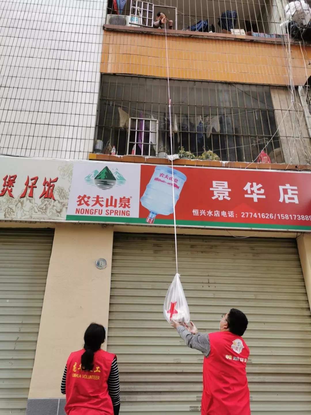 “為了實(shí)現(xiàn)無接觸配送,每天阿姨會(huì)把繩索放下來,她會(huì)電話告訴我們需要的菜品和生活用品,我們把她需要的東西都‘送’上去”。趙發(fā)威日常除了服務(wù)社區(qū)弱勢(shì)群體購(gòu)買生活必需品,還承擔(dān)機(jī)動(dòng)崗為需要替崗的志愿者“愛心接力”、執(zhí)行社區(qū)抗疫檢測(cè)點(diǎn)的測(cè)溫登記工作。
