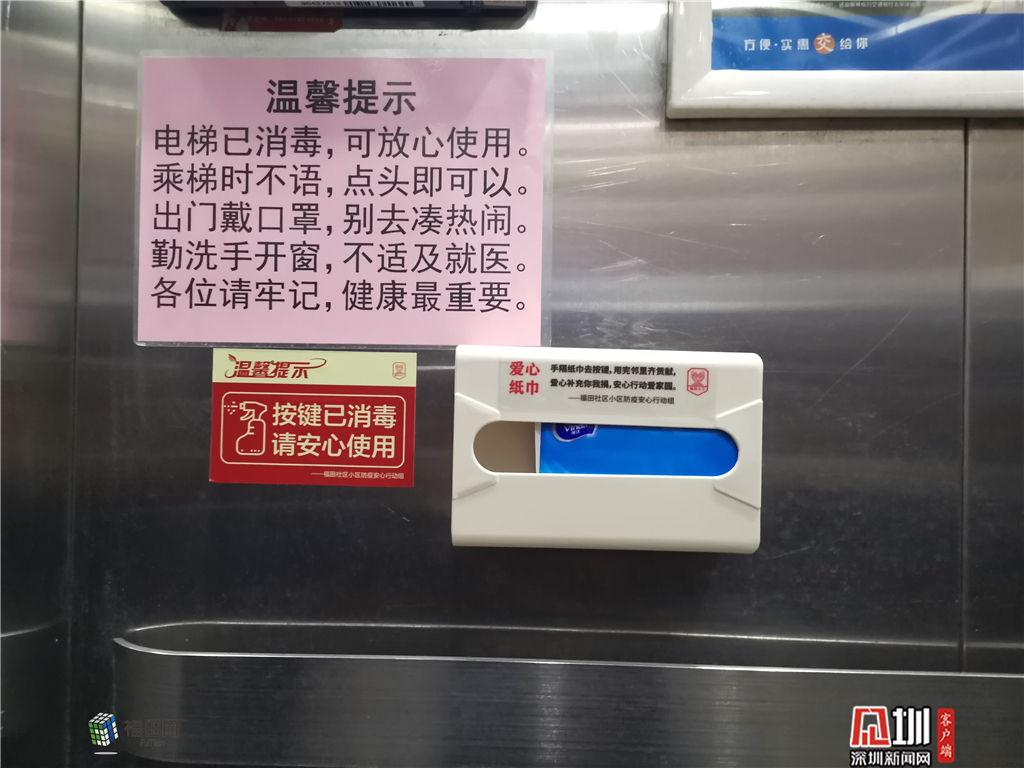 為做好小區(qū)防疫,電梯間消毒、電梯按鈕覆膜、電梯間設置公用紙巾已成為很多小區(qū)的標配,隨之也產(chǎn)生了新的問題,比如電梯按鈕覆膜多按幾下就破了,特別是“1”和關門按鍵,小區(qū)物業(yè)剛用新的膜覆蓋上,沒一會兒的功夫就被戳破了,另外,按電梯按鍵有的小區(qū)設置了公用紙,紙巾用后亂扔等問題也影響小區(qū)衛(wèi)生。面對這樣的抱怨和難題,福田區(qū)社區(qū)小區(qū)防疫安心行動組從細微處著手,為出現(xiàn)確診病例采取硬隔離的小區(qū)統(tǒng)一購制了掛壁紙巾盒,并采購了電梯按鈕專用膜覆蓋?!斑@種電梯按鍵保護膜太好了,韌性強、不易破,便于消毒,你們太細心了,非常感謝!”福田區(qū)蓮花街道彩田村物業(yè)公司負責人對安心行動組贈送的電梯按鍵透明保護膜贊不絕口。