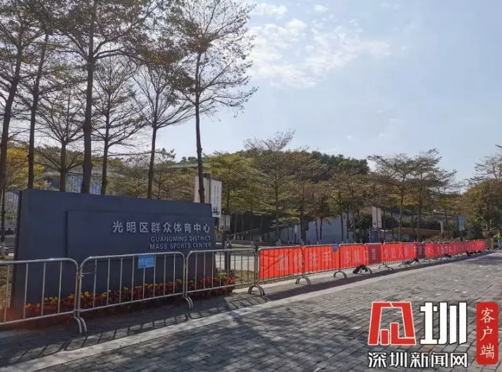 光明區(qū)群眾體育中心大門口被鐵馬圍著,只留下一處小門,一旁有保安值守??从浾呱锨埃s緊勸誡道:“如果沒有重要事情就不要進去了,現(xiàn)在館內(nèi)無活動?!?/p>