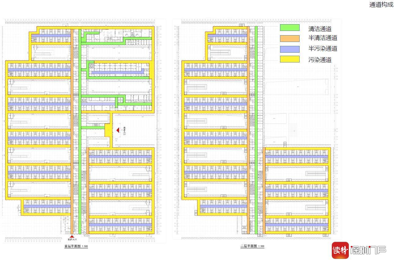 “建筑內(nèi)分別設置了醫(yī)護患者走廊,醫(yī)護走道在‘魚骨’位置,患者走道在‘魚刺’位置。”戚霖介紹說,醫(yī)護人員沿“魚骨”在內(nèi)部流動救治,患者只能沿“魚刺”環(huán)廊進出,最大程度降低醫(yī)患交叉感染幾率。