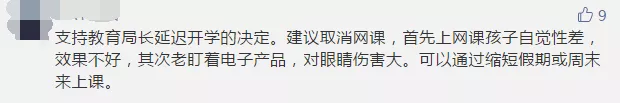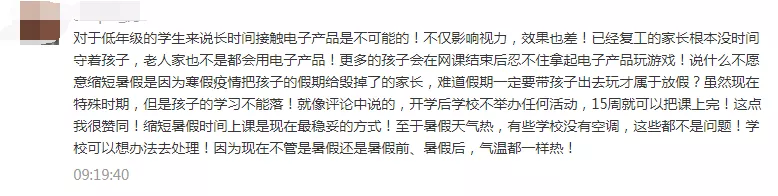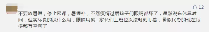 一些參與者留言建議減少或暫停網(wǎng)課時間,縮短周末或暑假時間進行補課。