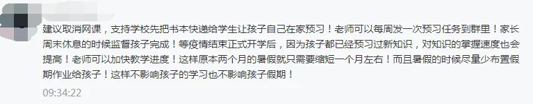 有家長建議把新教材發(fā)給學(xué)生,讓學(xué)生自學(xué),定期考察學(xué)習(xí)效果。