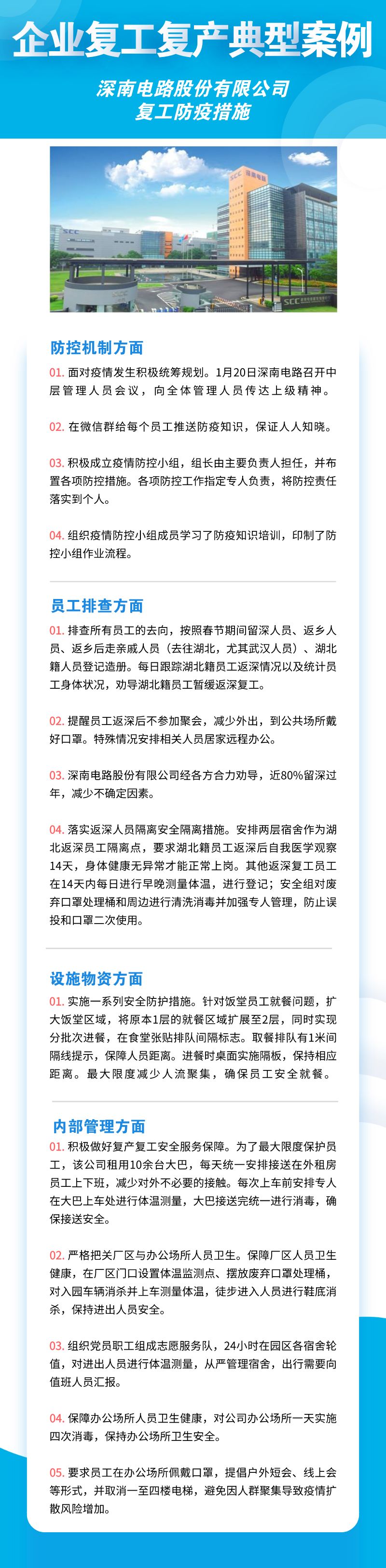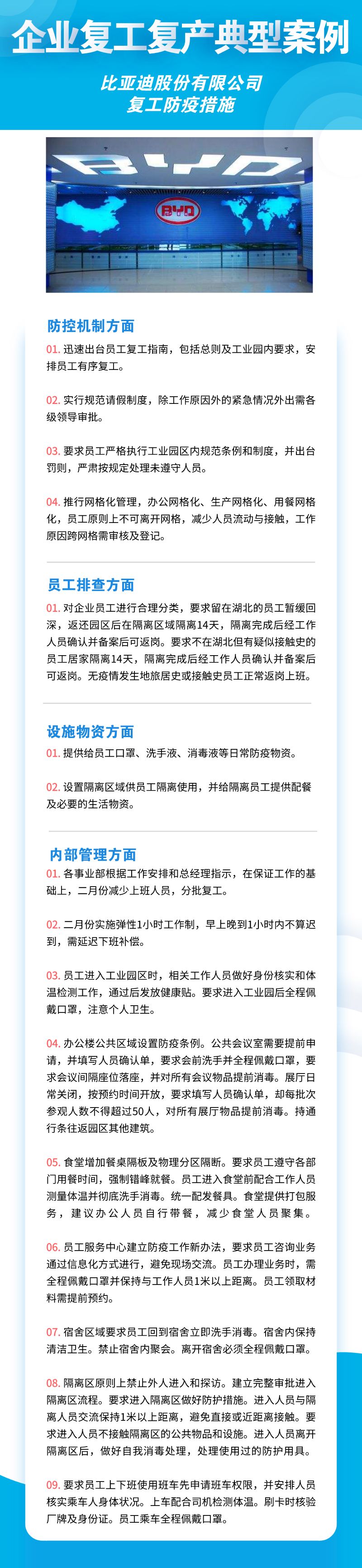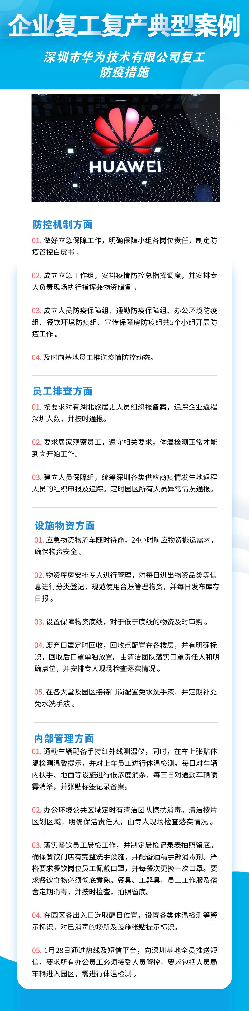 深圳市華為技術(shù)有限公司、聯(lián)想系統(tǒng)集成(深圳)有限公司、深南電路股份有限公司、比亞迪股份有限公司、創(chuàng)維集團(tuán)股份有限公司等8家公司,從防控機(jī)制、員工排查、設(shè)施物資、內(nèi)部管理四個(gè)方面來(lái)落實(shí)疫情防控措施,包括成立企業(yè)疫情防控小組、建立企業(yè)防控機(jī)制、提升員工防控意識(shí)、劃分隔離區(qū)域、宿舍食堂等區(qū)域消殺等舉措。