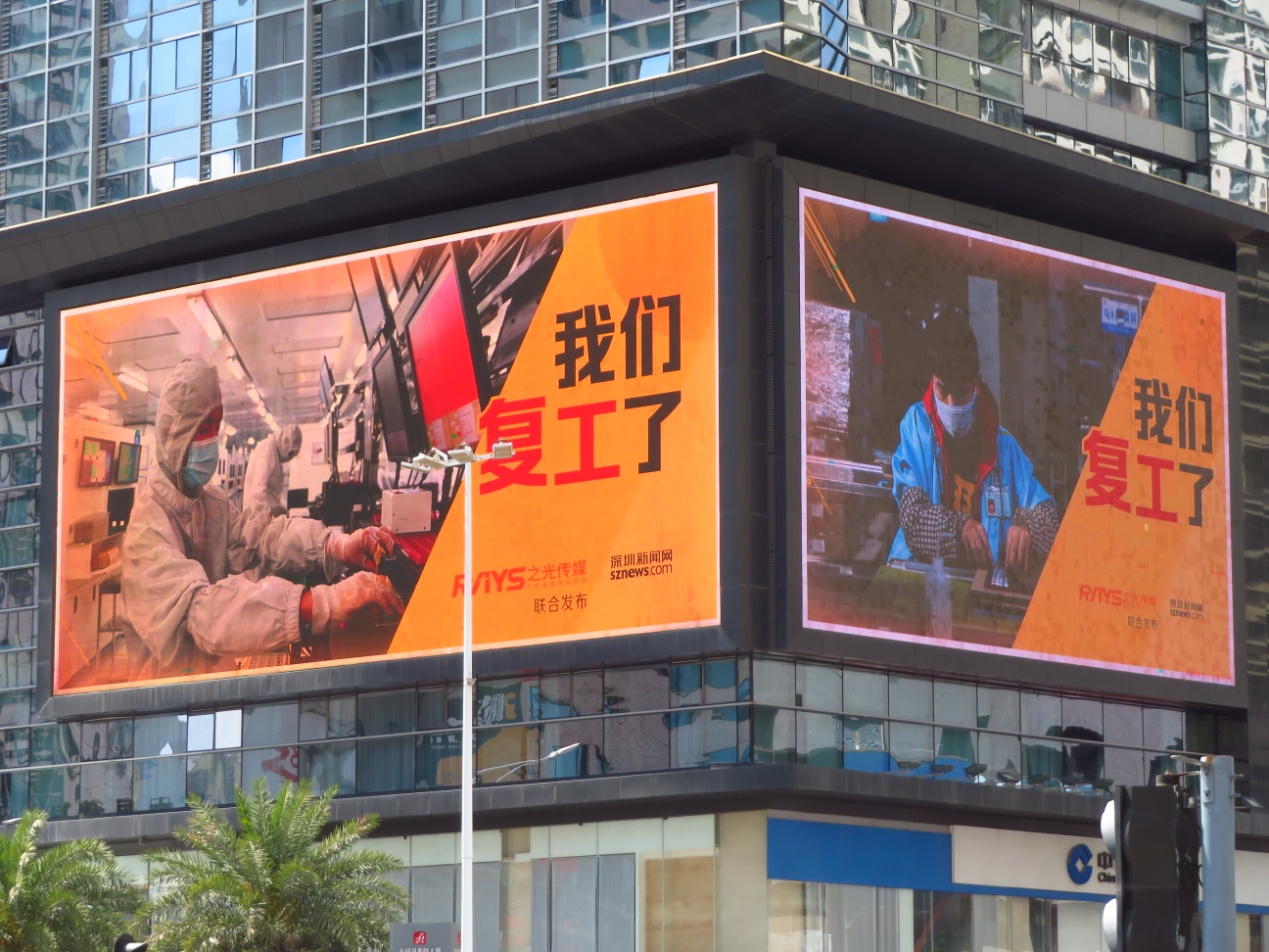 2月以來,深圳新聞網(wǎng)聯(lián)合之光傳媒在17塊戶外LED大屏廣告上刊登了多組不同主題的公益廣告,包括“加油中國”、“向逆行者致敬”、“瞞報(bào)就是犯罪”系列警示標(biāo)語、“我們復(fù)工了”等。這些戶外大屏遍布全市各主干道和核心商圈,總面積達(dá)6000㎡,市場價值約1200萬元。