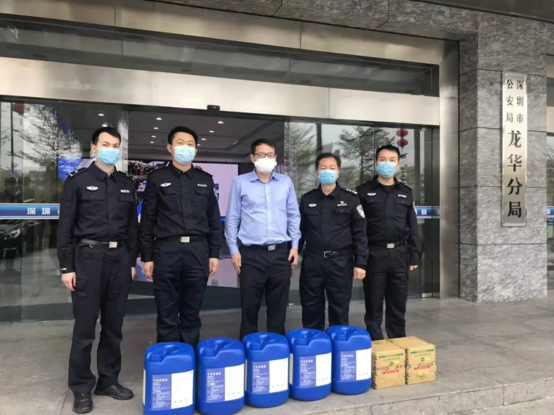 在疫情期間,這并不是他們第一次捐贈。早在1月31日,慈善小團隊就給龍華公安分局、龍華街道辦事處、龍華區(qū)網(wǎng)格辦等幾個部門送去了價值約8萬元的消毒水。之后,又陸陸續(xù)續(xù)向深圳市公安局捐贈12桶消毒原液,向龍華公安分局捐贈了7桶消毒水,向社區(qū)捐贈醫(yī)用口罩1000個、5桶消毒水、20瓶300毫升消毒水,向龍華區(qū)人民醫(yī)院捐贈