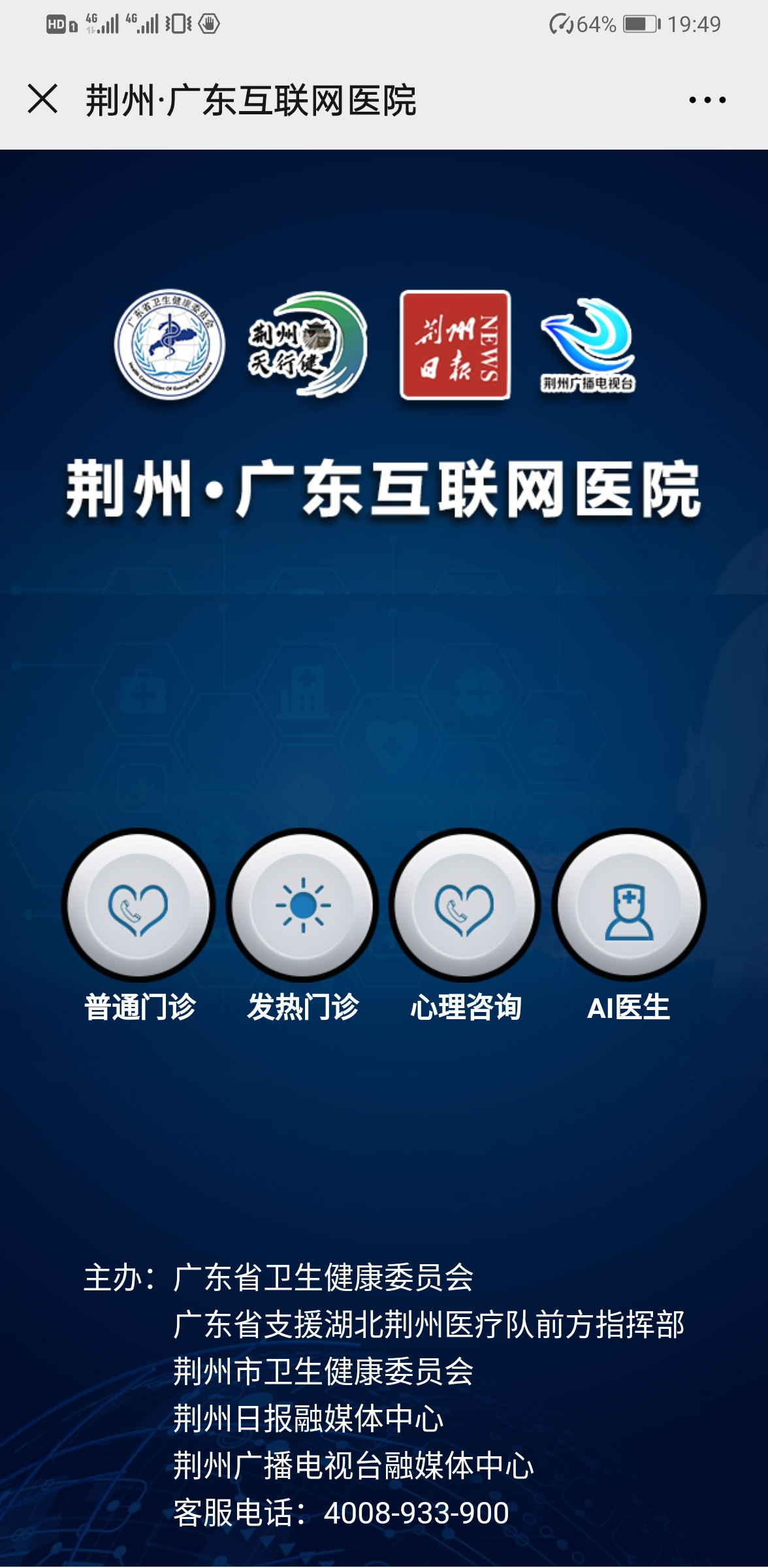 這家互聯(lián)網(wǎng)醫(yī)院是由廣東省衛(wèi)生健康委和廣東支援湖北荊州醫(yī)療隊前方指揮部聯(lián)合,在充分研判荊州疫情防控形勢的基礎(chǔ)上組建的網(wǎng)上醫(yī)療隊,實(shí)現(xiàn)荊州市民足不出戶,即可享受后方優(yōu)質(zhì)的線上服務(wù)資源,為前方“主戰(zhàn)場”減負(fù)。