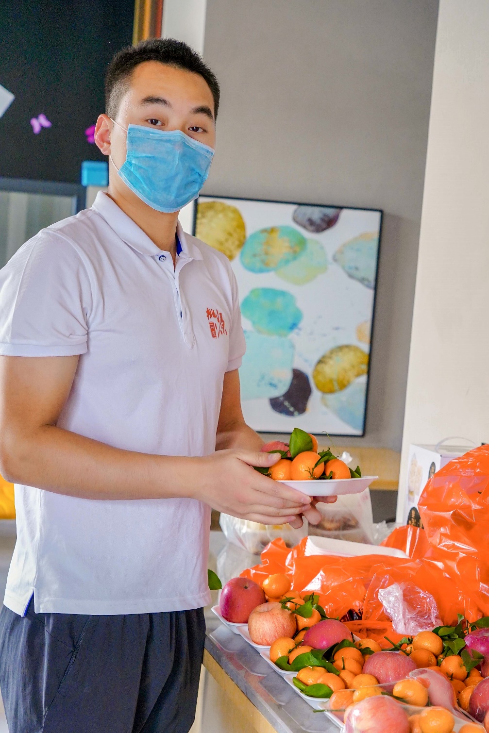 “這里的住客,大多數(shù)都是有家屬為確診患者的,隔離期間心理壓力非常大,我們一定要多關(guān)心他們,保障好他們的生活”楊超林說。為此,他努力協(xié)調(diào)酒店安排豐盛的三餐,還配備了補充維C增強免疫力的水果、牛奶加餐,保證密切接觸者的營養(yǎng)供給增強抵抗力。酒店的標(biāo)準(zhǔn)配置并不能滿足大家的個性生活需求,細(xì)心的楊超林每日回訪時都會記下客人的要求,及時采購了一批洗衣液、洗漱品、蚊香液、手機充電線等生活物資,盡最大努力打造一個溫馨、有人情味的觀察點。
