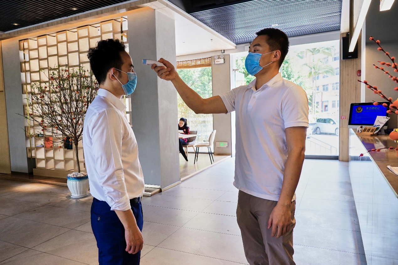 疫情未止,隔離酒店仍在運轉(zhuǎn)中,隔離的客人剛安全送走一波,又匆匆迎來另一波,楊超林來不及歇口氣,就像不知疲倦的“超人”一樣,轉(zhuǎn)身又精神抖擻地投入到下一輪的緊張戰(zhàn)斗中。