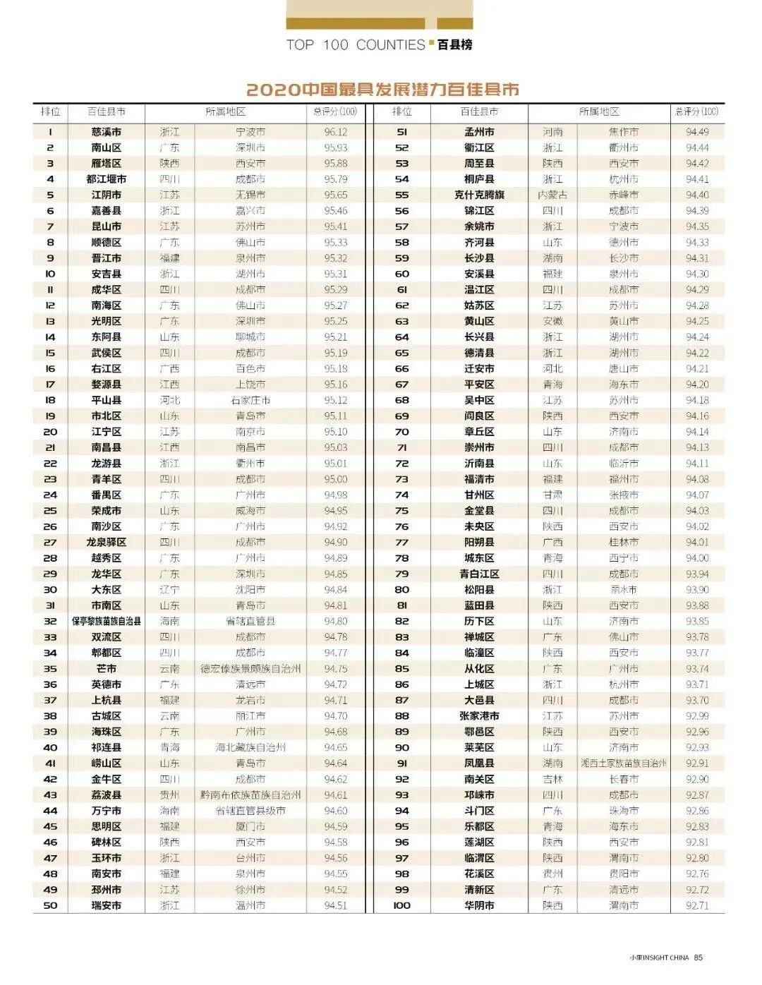原標(biāo)題:2020中國(guó)最具發(fā)展?jié)摿Π偌芽h市發(fā)布南山全國(guó)第二,光明及龍華也上榜